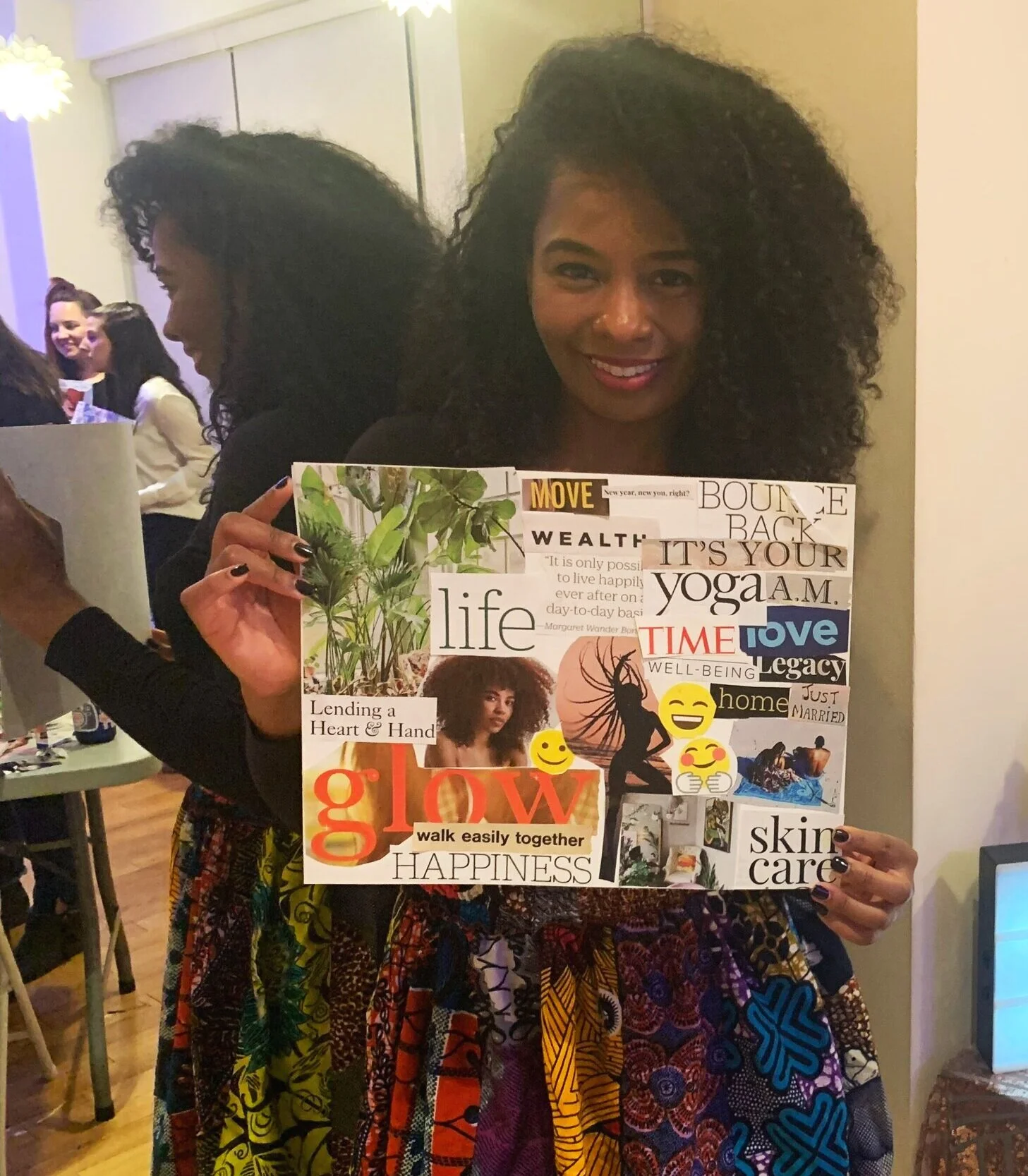 Vision Board Party with SassClass at xixi in NYC! We cut and collaged our visions for 2020 onto bristol paper. Everyone shared about their vision boards and what the process felt like. And we all looked into our eyes in a mirror and said kind words, practicing self-love.